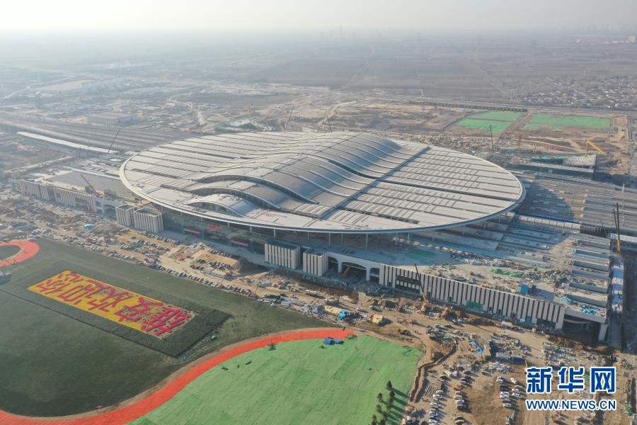 這是河北雄安站(無人機(jī)照片,12月16日攝)。新華社發(fā)(中鐵建工集團(tuán)雄安站項(xiàng)目部供圖)