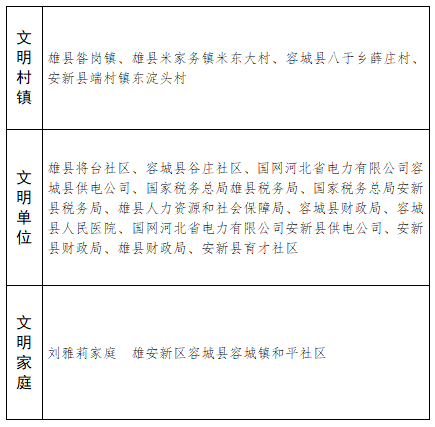 河北省文明村鎮(zhèn)、文明單位、文明家庭保留稱號名單(雄安新區(qū)部分)