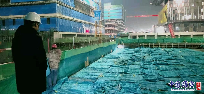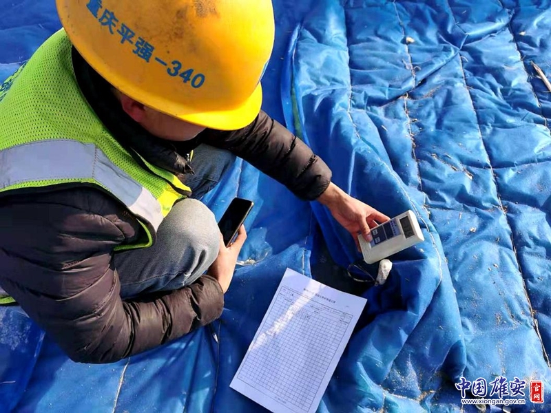雄安商務(wù)服務(wù)中心項目二標(biāo)段建設(shè)現(xiàn)場,建設(shè)工人對施工作業(yè)面進(jìn)行測溫。中建八局供圖