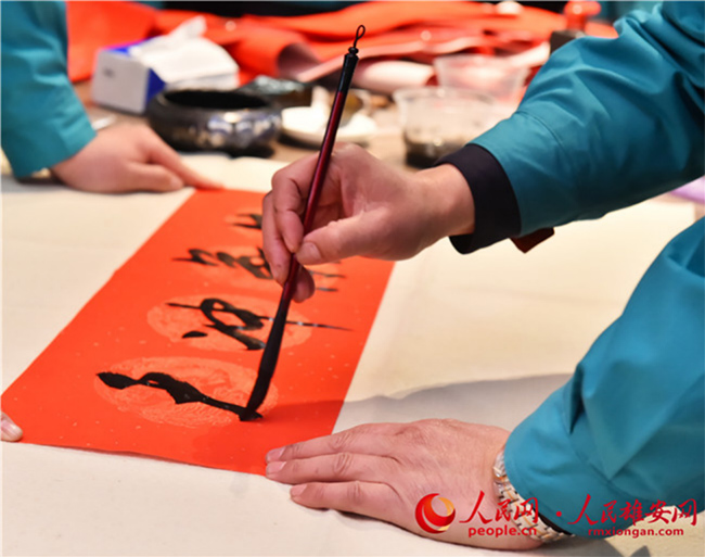 雄安新區(qū)容東片區(qū)B1組團(tuán)安置房項(xiàng)目留雄過年建設(shè)者寫春聯(lián)。