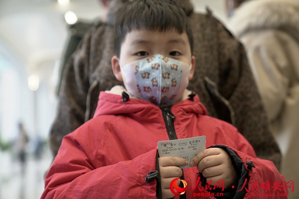 2020年12月27日上午,京雄城際鐵路全線開通運營,一位小朋友手里拿著雄安到北京西的車票。人民網 宋燁文攝