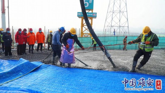 建設(shè)單位中國雄安集團生態(tài)建設(shè)公司把該項目作為一號工程,在新區(qū)黨工委、管委會和雄安集團領(lǐng)導下,認真貫徹落實河北省委、省政府決策部署,全力保質(zhì)量、保進度、保安全、保成本、保廉潔,堅決完成建設(shè)施工任務(wù)。施工單位北京城建集團于2020年12月4日收到中標通知書后,克服了時間緊、任務(wù)重以及冬季施工難度大等困難,發(fā)揚鐵軍精神,僅用2個多月時間就完成春節(jié)前主體結(jié)構(gòu)封頂?shù)募榷ㄈ蝿?wù)。