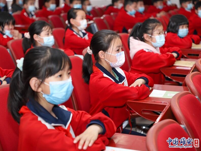 雄縣第二小學學生認真聆聽黨史課。田甜 攝
