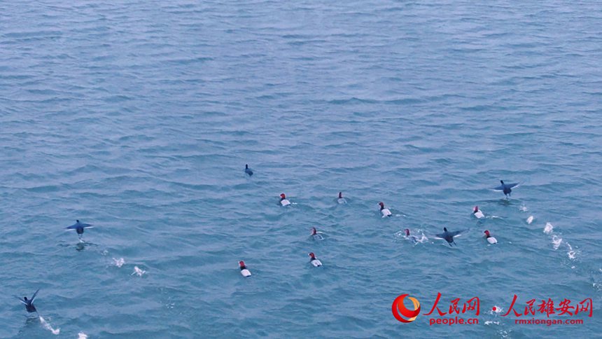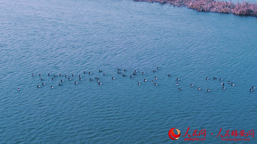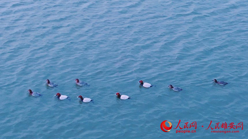 成群結(jié)隊(duì)的國(guó)家“三有”保護(hù)動(dòng)物紅頭潛鴨在白洋淀游曳。高騰攝
