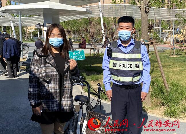 人民網(wǎng)雄安5月1日電 (劉師豪)今天上午,在雄安新區(qū)容東片區(qū)明珠園小區(qū)東側(cè)的電動(dòng)自行車登記服務(wù)點(diǎn),王志偉領(lǐng)到了屬于自己的號(hào)牌。這也是該服務(wù)點(diǎn)發(fā)放的第一張電動(dòng)自行車號(hào)牌。