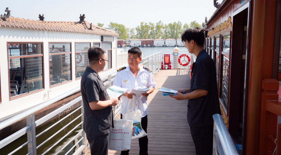 干警們還走進(jìn)碼頭、游客服務(wù)中心、船艙等,選取白洋淀流域集中管轄以來兩級法院審理的非法捕撈水產(chǎn)品、非法排污等典型案例進(jìn)行以案說法,深入淺出地講解了破壞生態(tài)環(huán)境帶來的嚴(yán)重后果以及需要承擔(dān)的法律責(zé)任,呼吁現(xiàn)場游客從身邊小事做起,做白洋淀流域環(huán)境保護(hù)的宣傳者、倡導(dǎo)者、行動者。并結(jié)合刑法、環(huán)境保護(hù)法等法律法規(guī),解答現(xiàn)場群眾和游客們提出的環(huán)境保護(hù)相關(guān)法律問題。