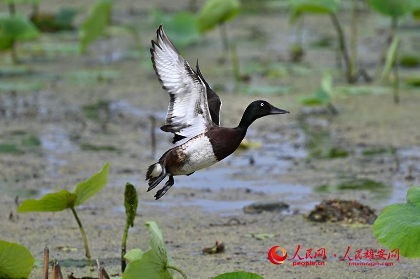 人民網(wǎng)雄安6月25日電 (劉師豪、宋燁文)近日,來自雄安新區(qū)安新縣的愛鳥護(hù)鳥志愿者、生態(tài)攝影師張學(xué)農(nóng)在白洋淀某處水域發(fā)現(xiàn)了約30只國家一級保護(hù)野生動物青頭潛鴨的身影,并且拍到了青頭潛鴨雌鳥與雛鳥活動的影像。