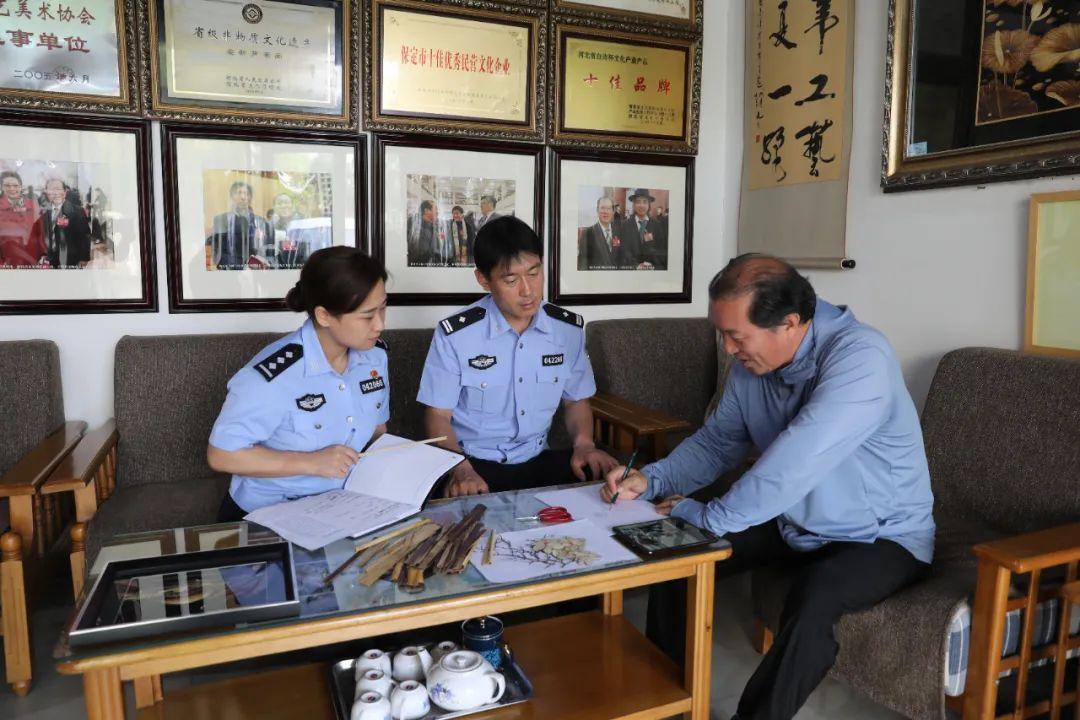 容城縣公安局交通管理大隊(duì)民警與蘆葦畫(huà)非遺傳承人楊丙軍老師深入交流交通安全文化創(chuàng)作思路和理念。