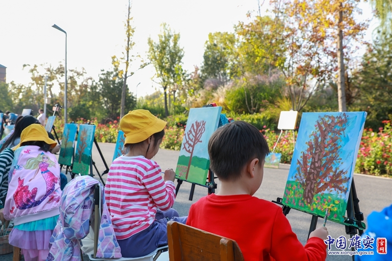 孩子們在細心描繪心中的美景。雄安郊野公園供圖
