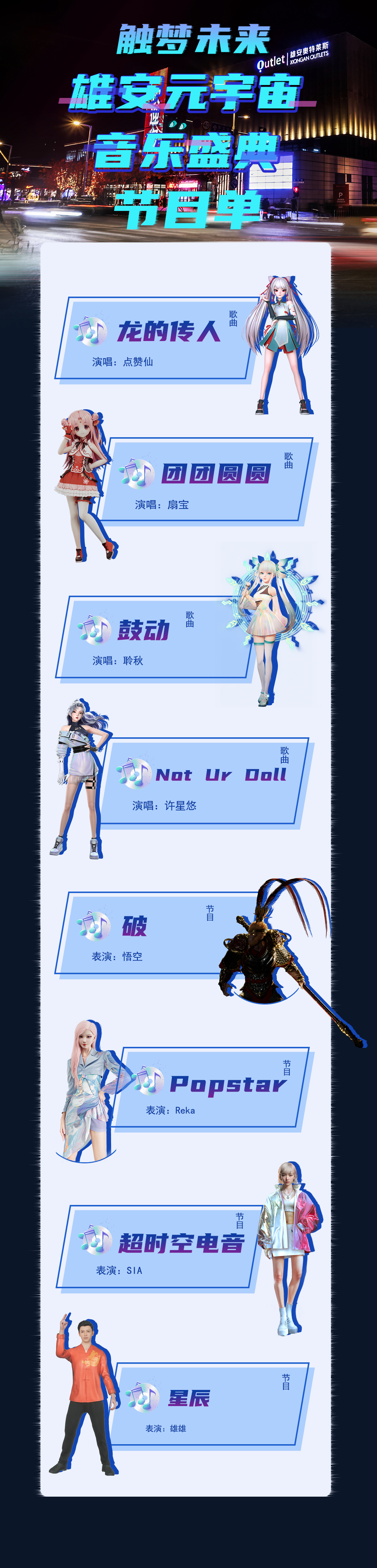 此次音樂花燈會(huì)活動(dòng)分為“觸夢未來·雄安元宇宙音樂盛典”“雄安新區(qū)元宇宙元宵燈會(huì)”“人工智能體驗(yàn)區(qū)”“文創(chuàng)展區(qū)”4大主題內(nèi)容。其中,“觸夢未來·雄安元宇宙音樂盛典”將于2月23日至25日每天19:00開場,本次音樂盛典將結(jié)合VR(虛擬現(xiàn)實(shí))、AR(增強(qiáng)現(xiàn)實(shí))、裸眼3D、數(shù)字虛擬主持人等前沿科技,突破傳統(tǒng)音樂會(huì)形式,帶給觀眾以沉浸式的音樂體驗(yàn)。