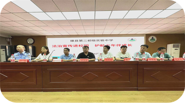 按照“八五”普法工作要求,河北省保定市雄縣扎實開展“關(guān)愛花朵計劃”三年行動,持續(xù)加大“法治進(jìn)校園”普法宣傳教育力度,厚植法治土壤,“護苗”茁壯成長,不斷增強在校學(xué)生的法治觀念和自我保護能力。2024年6月5日,雄縣縣委政法委聯(lián)合縣人大辦、縣政協(xié)辦、團縣委、縣婦聯(lián)、縣公安局、縣教育局、縣民政局等部門在雄縣第二初級實驗中學(xué)開展“法治宣傳進(jìn)校園,護航少年伴成長”普法宣傳?;顒佑尚iL鄭通同志主持,有關(guān)部門領(lǐng)導(dǎo)出席并講話,部分老師、學(xué)生代表參加了活動。