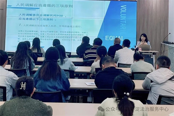 2024年5月7日,首場培訓于望淀社區(qū)黨群服務中心開展,培訓對象為東西里社區(qū)、胡村社區(qū)及望淀社區(qū)書記、副書記、社工、樓門長等參與社區(qū)調解工作的骨干成員。