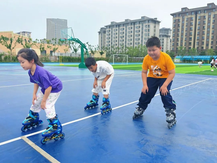 輪滑課上孩子們認真練習(xí)每一個動作 雄安容西云溪小學(xué)供圖