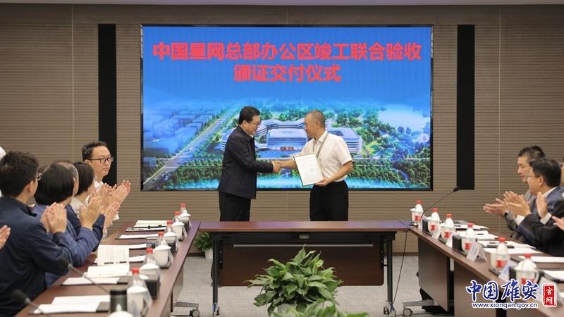 中國雄安官網9月26日電 9月26日,在中國星網雄安總部辦公樓,雄安新區(qū)管委會和中國星網集團共同舉辦中國星網雄安總部項目竣工聯合驗收頒證儀式。會上,雄安新區(qū)管委會副主任高懷軍為中國星網集團正式頒發(fā)竣工聯合驗收通過意見書,標志著首家疏解北京非首都功能的央企總部正式竣工交付,入駐雄安。中國星網集團基建辦主任黃海清、雄安新區(qū)相關部門同志參加會議。