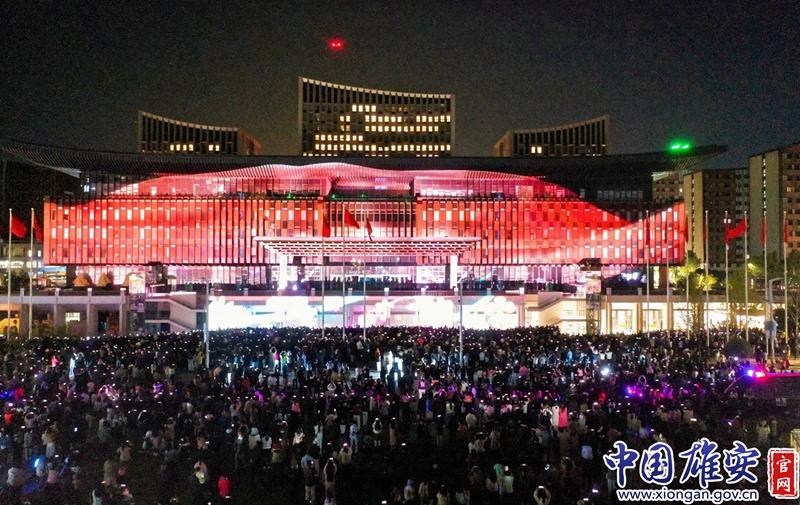 雄安首屆X青年藝術節(jié)建筑MAPPING光影秀現場。中國雄安官網發(fā)