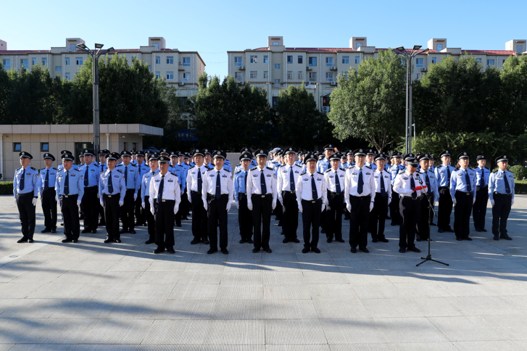 伴隨著雄壯的中華人民共和國國歌,鮮艷的五星紅旗冉冉升起,在蔚藍的天空中迎風飄揚。全體民輔警精神抖擻、英姿勃發(fā),面向國旗莊嚴敬禮,表達對黨的無限忠誠和對祖國的誠摯祝福。