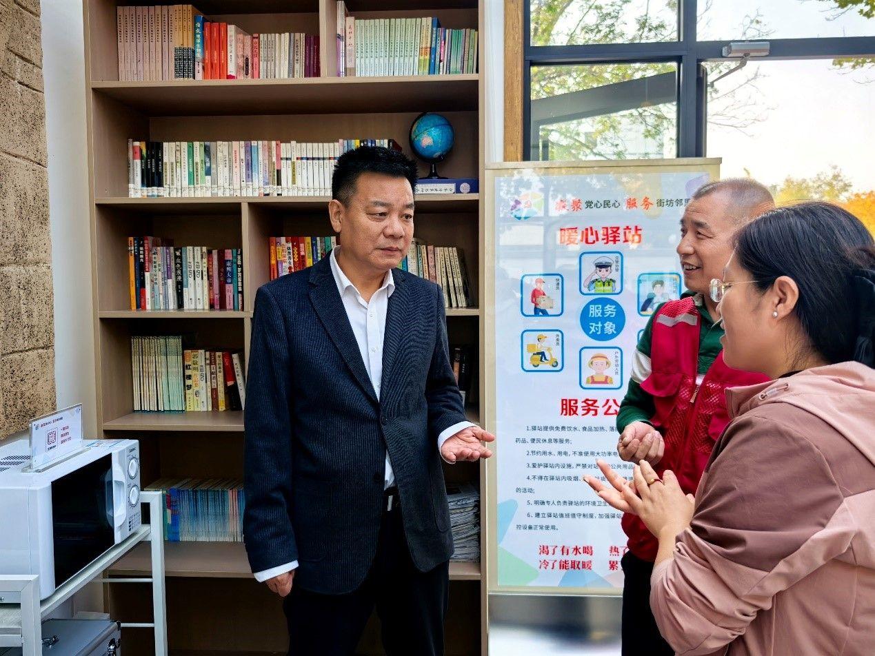 “暖心驛站”為外賣、快遞及環(huán)衛(wèi)工人提供“6+N”服務(wù),包括落腳休息、食品加熱、免費飲水、學(xué)習(xí)閱讀、便民應(yīng)急和如廁盥洗6項標準化服務(wù),同時結(jié)合社區(qū)實際情況及各類職業(yè)需求,因地、因需定制包括政策宣講、法律咨詢、義診體檢、文體活動在內(nèi)的N項特色化服務(wù)。