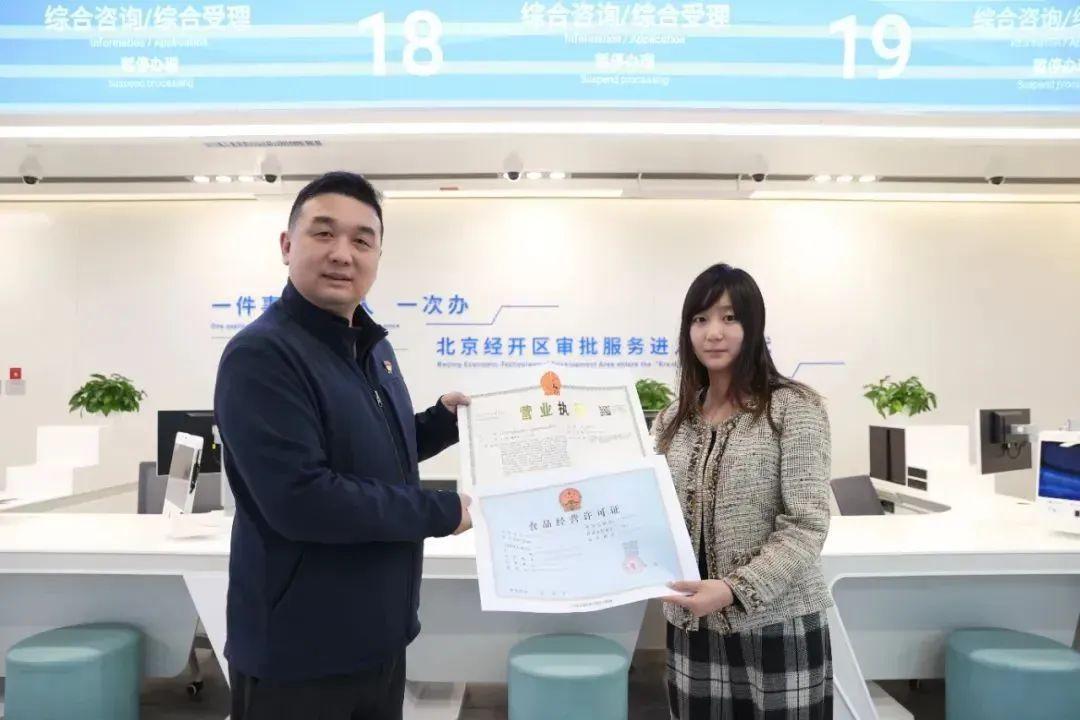 辦事群眾在北京經(jīng)開區(qū)政務(wù)服務(wù)中心領(lǐng)取證照。