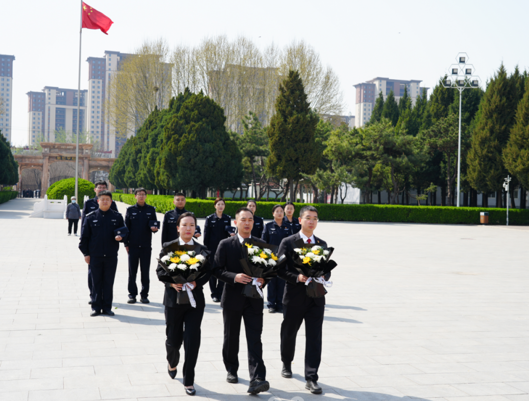 烈士陵園莊嚴肅穆,中院司法警察儀仗隊邁著鏗鏘有力的步伐,護送著花圈緩緩走向烈士紀念碑。在雄壯的國歌聲中,全體人員肅立默哀,向長眠于此的革命先烈致以最深切的哀思和最崇高的敬意。隨后,法院干警依次在紀念碑前獻花,重溫入黨誓詞,錚錚誓言在陵園上空久久回蕩,展現(xiàn)了新時代法院干警不忘初心、牢記使命的堅定信念。