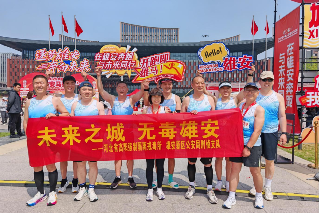 在賽道上,還有一支格外引人注目的隊伍,那就是新區(qū)公安局刑偵支隊聯(lián)合河北高陽強(qiáng)制隔離戒毒所民輔警、社會志愿者、在校大學(xué)生等群體組成的“雄安新區(qū)禁戒毒公益跑團(tuán)”。他們身著統(tǒng)一服裝,向周圍的選手和觀眾傳遞“健康人生,綠色無毒”理念,為這場盛大的賽事增添了一抹靚麗的色彩。