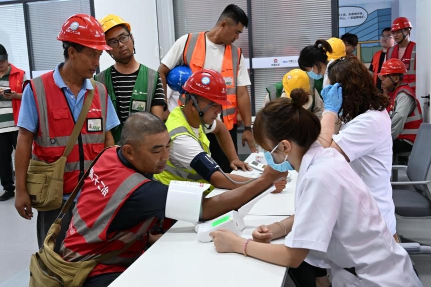 夏季,結(jié)合一線工人建設者的實際需求,啟動區(qū)管委會積極開展“夏日送清涼”主題活動,聯(lián)合醫(yī)療機構(gòu)、律師事務所以及愛心商家等多類型社區(qū)合伙人,把愛心義診、愛心義剪、愛心捐贈以及法律維權(quán)送進工地。從測量血壓血糖、皮膚病診斷到急救知識宣講,從公益理發(fā)到法律咨詢,以細致的服務解決工友的急難愁盼,把暖心服務送到建設者心坎上,讓工友們在啟動區(qū)感受到“家”的溫暖。