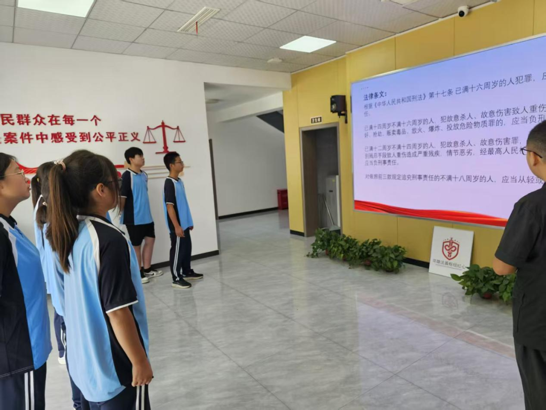 8月22日,雄縣人民法院開展“雄小荷”系列活動之雄安站樞紐片區(qū)人民法庭開放日活動,邀請樞紐片區(qū)法庭周邊學(xué)生及老師來到法庭,以“走進(jìn)法庭,護(hù)航未來”為主題,與老師、學(xué)生們共話未成年人健康成長。