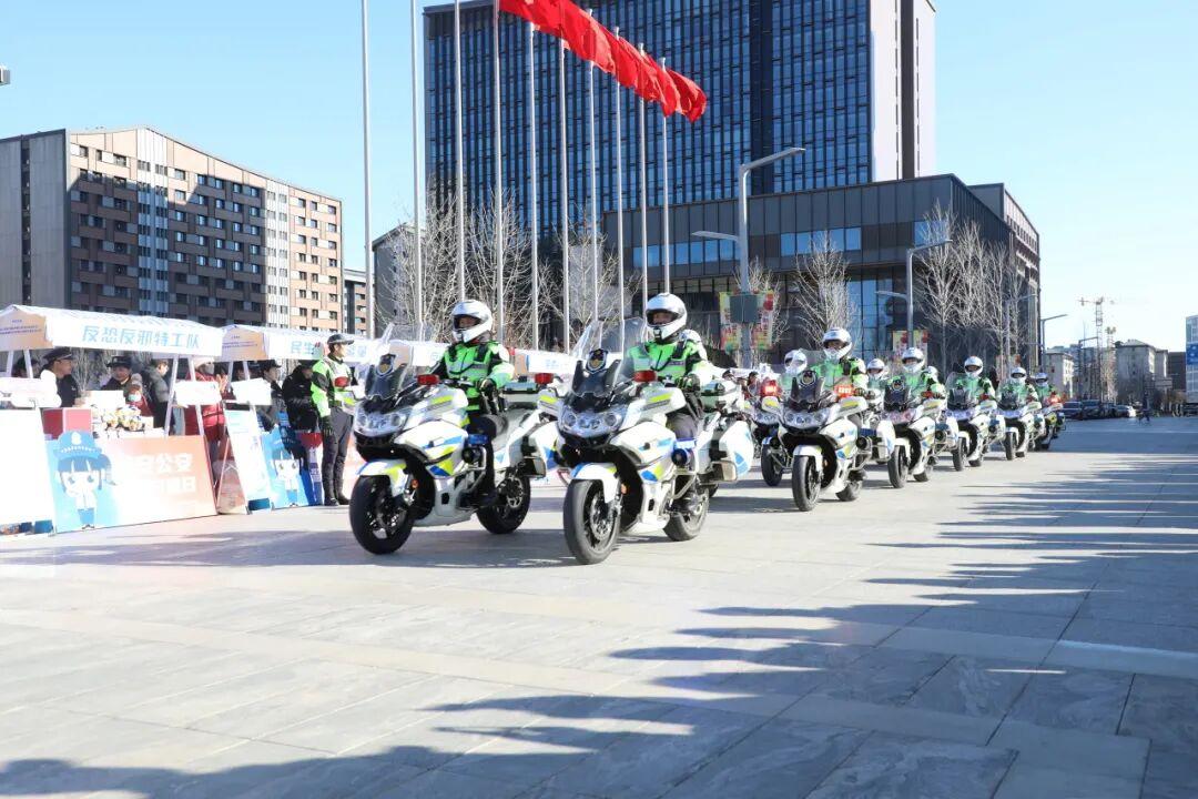 雄安公安鐵騎隊伍駕駛新一代國賓大排量專用車震撼亮相。