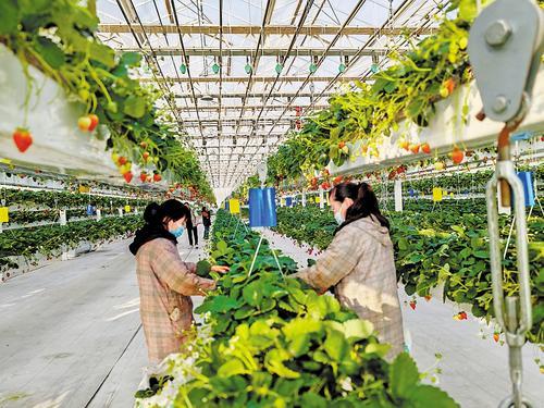 1月15日,雄安新區(qū)高宇農(nóng)業(yè)園的玻璃溫室內(nèi),工作人員正在采摘草莓。 本報(bào)見(jiàn)習(xí)記者 康曉博攝