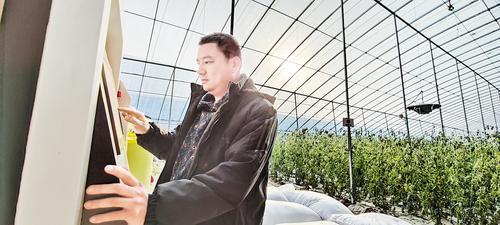 1月15日,雄安新區(qū)都市農(nóng)業(yè)科技博覽園內(nèi),工作人員通過(guò)智能種植管控系統(tǒng)為大棚里的農(nóng)作物澆水。 本報(bào)記者 曹錚攝