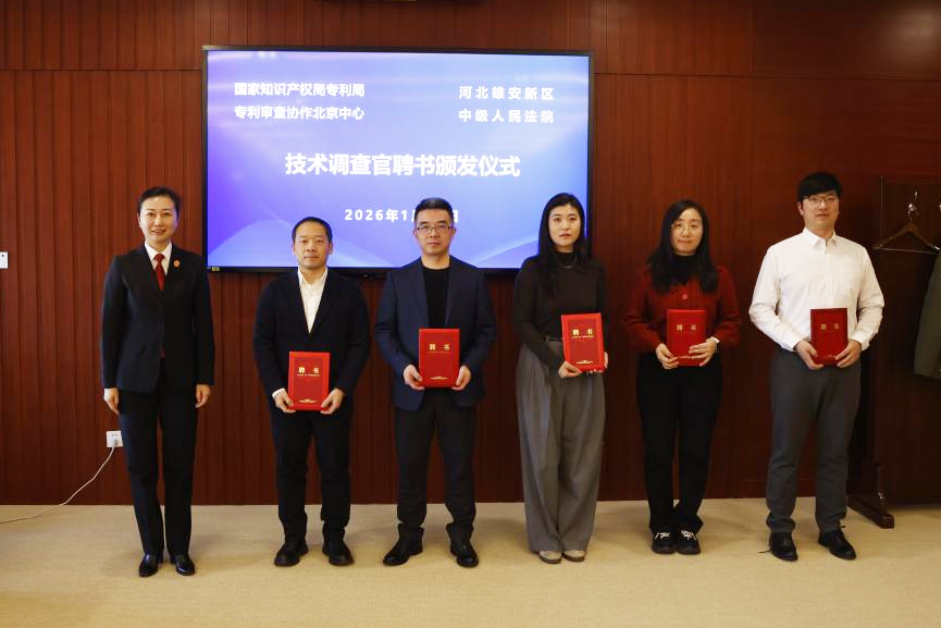 李靜靜在發(fā)言時指出,雄安中院牢記“打造貫徹落實新發(fā)展理念的創(chuàng)新示范區(qū)”的初心使命,充分發(fā)揮司法審判職能,以高質(zhì)量的知識產(chǎn)權(quán)審判護(hù)航雄安新區(qū)建設(shè)創(chuàng)新之城。雄安知識產(chǎn)權(quán)法庭始終致力于健全審判機(jī)制、提升專業(yè)能力、深化協(xié)同保護(hù),不斷加強知識產(chǎn)權(quán)專業(yè)化審判隊伍建設(shè)。本次受聘的技術(shù)調(diào)查官涵蓋機(jī)械、電學(xué)、通信、醫(yī)藥生物、化學(xué)、光電、材料和外觀設(shè)計八大領(lǐng)域,他們的加入進(jìn)一步增強了雄安中院知識產(chǎn)權(quán)專業(yè)化力量,為進(jìn)一步打造“技術(shù)調(diào)查+技術(shù)咨詢+技術(shù)鑒定+專家輔助+專家陪審”“五位一體”的技術(shù)事實查明機(jī)制,為切實提升技術(shù)類案件審判質(zhì)效提供有力支持。她希望,新任技術(shù)調(diào)查官要進(jìn)一步提高政治站位,恪守客觀公正立場,在未來的履職中發(fā)揮專長、貢獻(xiàn)力量,為雄安知識產(chǎn)權(quán)審判提供堅實支撐。