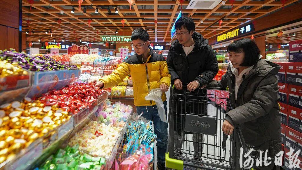 2月6日,竇則勝和家人在雄安奧特萊斯挑選年貨。河北日報見習記者李暢攝