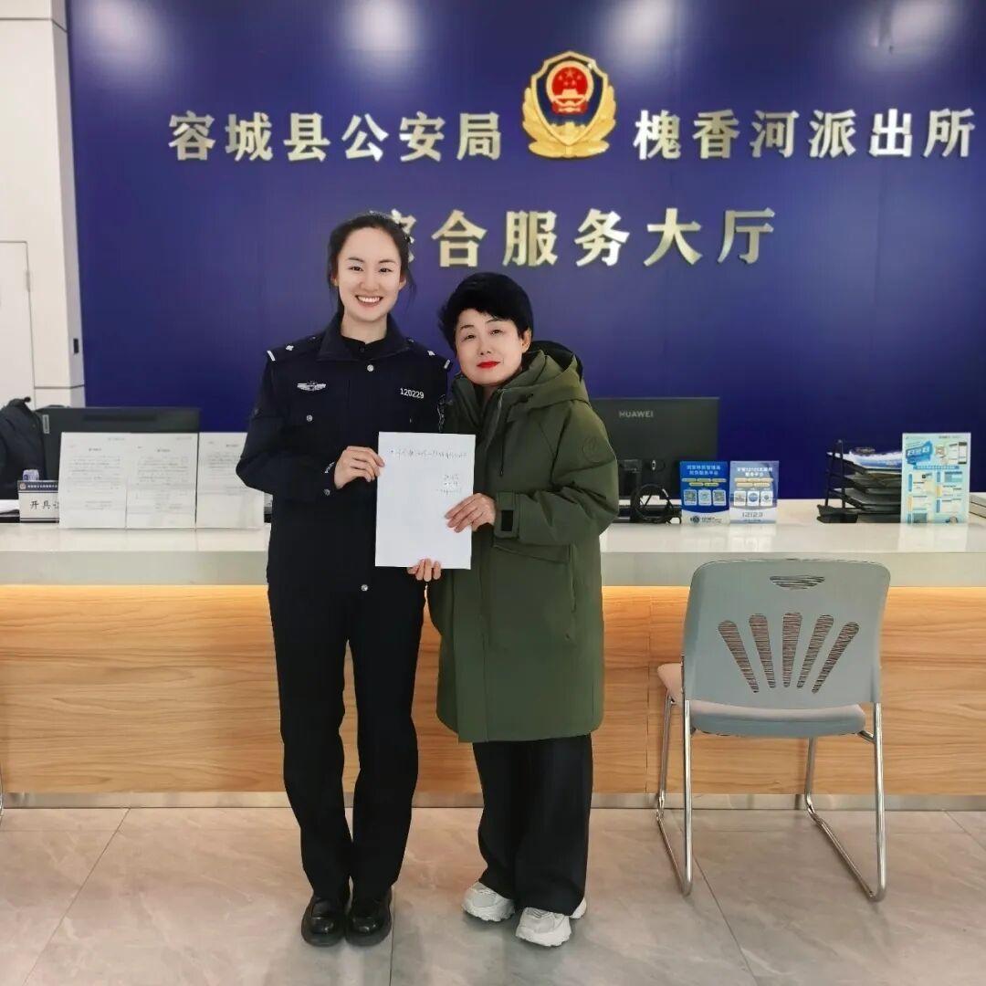容城縣公安局槐香河派出所戶(hù)政大廳收到一封感謝信。