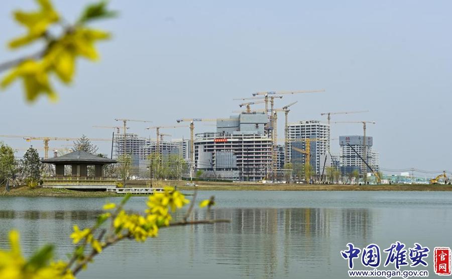 熱火朝天的建筑工地與爛漫春花,構成了雄安春日最獨特的風景。胡忠 攝