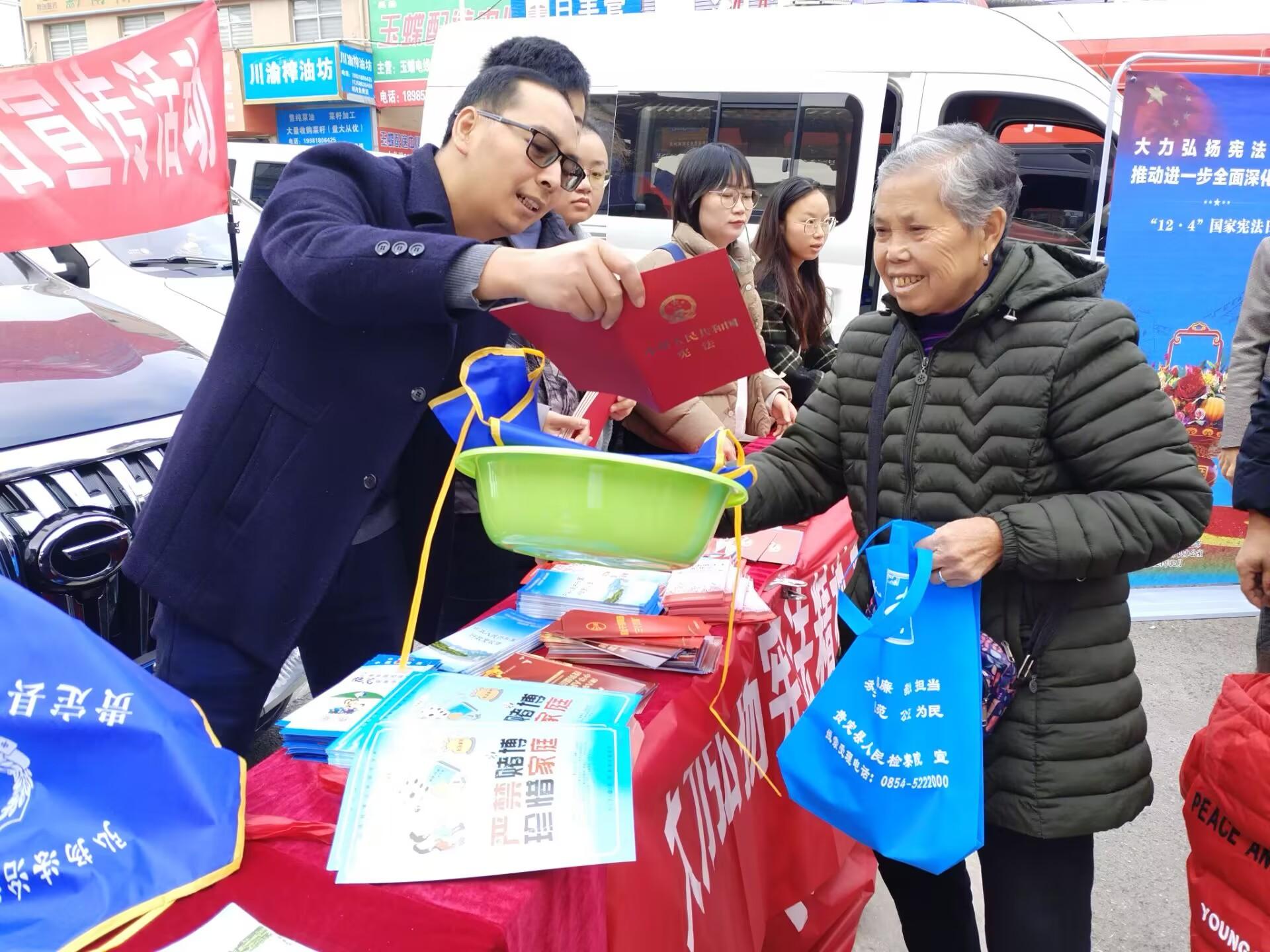12月4日,都勻市、福泉市、甕安縣、龍里縣以及貴定縣等多個(gè)地區(qū)單位分別開(kāi)展憲法宣傳教育活動(dòng),通過(guò)設(shè)立法律咨詢(xún)臺(tái)、懸掛宣傳橫幅、擺放宣傳展板、發(fā)放宣傳資料等形式,向群眾宣傳講解國(guó)家憲法日的由來(lái)和憲法的法律地位、法律效力等相關(guān)知識(shí),解答與群眾生活息息相關(guān)的法律問(wèn)題,引導(dǎo)群眾尊法學(xué)法守法用法,用合理、合法的方式表達(dá)訴求,維護(hù)權(quán)益,營(yíng)造尊崇憲法、學(xué)習(xí)憲法、遵守憲法、維護(hù)憲法、運(yùn)用憲法的良好氛圍。