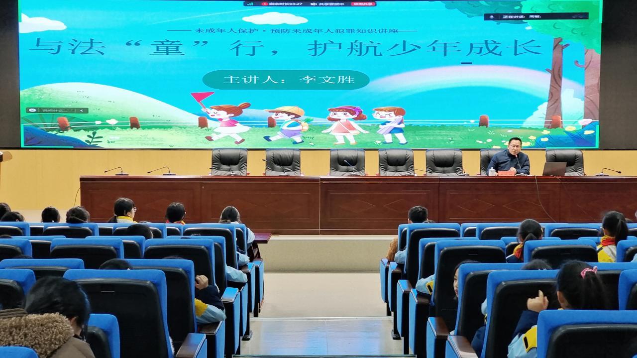 法治副校長李文勝以“與法‘童’行,護航少年成長”為主題,結(jié)合小學(xué)生的認(rèn)知特點,重點講解了《中華人民共和國未成年人保護法》《中華人民共和國預(yù)防未成年人犯罪法》,深入剖析未成年人犯罪的常見類型及其背后的原因,并向?qū)W生們闡述了犯罪行為對個人、家庭和社會造成的嚴(yán)重危害。