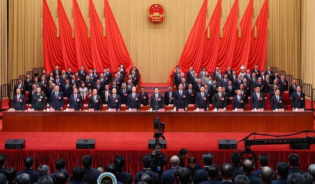 大會(huì)在雄壯的國歌聲中勝利閉幕。閉幕會(huì)結(jié)束后,舉行了憲法宣誓儀式。