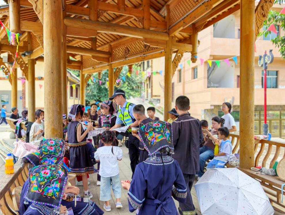 近日,貴州省六盤水市六枝特區(qū)2025年全國(guó)夏季“村晚”示范點(diǎn)展示活動(dòng)之享“村趣”傳統(tǒng)民俗體驗(yàn)活動(dòng)在牂牁鎮(zhèn)自強(qiáng)廣場(chǎng)開展,活動(dòng)引來周邊上百群眾和游客前來觀看參加。借此機(jī)會(huì),六枝特區(qū)公安局交通警察大隊(duì)在做好道路交通安保工作的同時(shí),以該民俗活動(dòng)為契機(jī),結(jié)合夏季交通安全出行特點(diǎn),組織執(zhí)勤交警走進(jìn)民俗活動(dòng)現(xiàn)場(chǎng),開展農(nóng)村夏季交通安全宣傳。