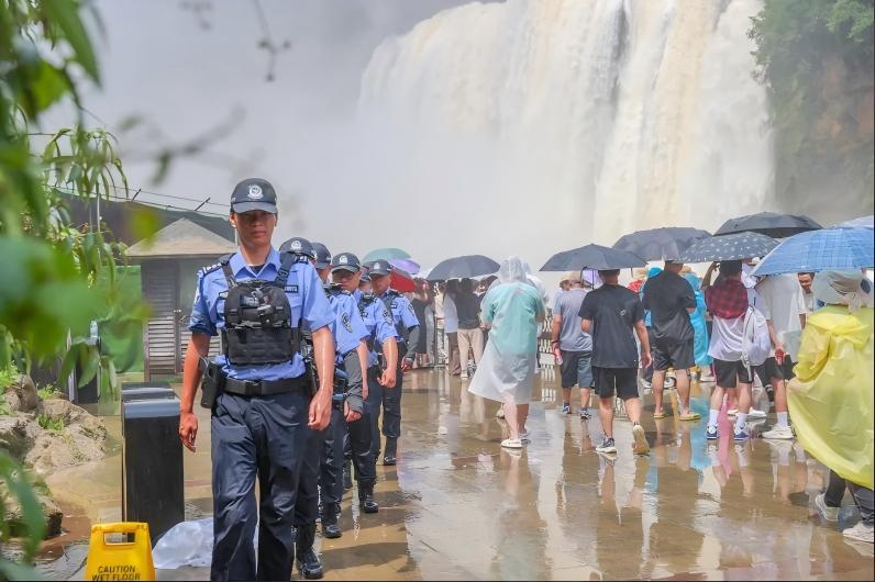 而這樣的瞬間,在年均接待游客580萬人次的世界級景區(qū)黃果樹瀑布每天都在上演,景區(qū)治安派出所的6名民警和53名輔警以“景警融合”的模式,守護(hù)著115平方公里的景區(qū)安全,成為一道獨特而亮麗的風(fēng)景線。
