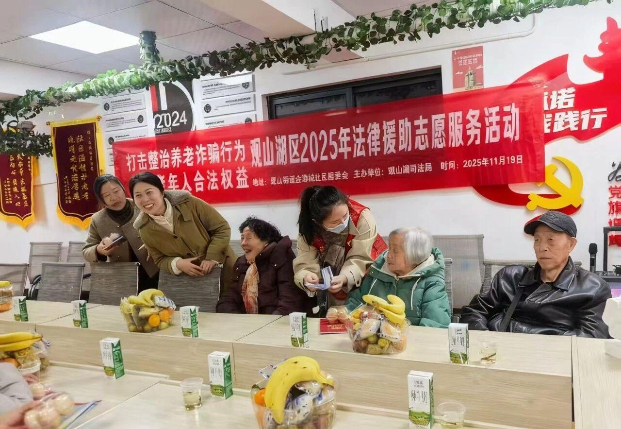 2025年11月19日,貴州省貴陽(yáng)市觀山湖區(qū)觀山街道金海域居委會(huì)組織開(kāi)展老年人集體生日活動(dòng),觀山湖區(qū)司法局觀山司法所順勢(shì)而為同步開(kāi)展預(yù)防養(yǎng)老詐騙主題宣傳活動(dòng),通過(guò)發(fā)放宣傳資料與互動(dòng)教學(xué)相結(jié)合的方式,為老年群眾提供防詐知識(shí)“生日禮”。