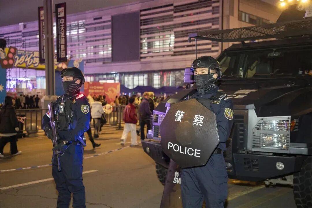跨年夜的貴陽(yáng)精彩紛呈,貴陽(yáng)國(guó)際會(huì)展中心北廣場(chǎng)的路邊音樂會(huì)群星獻(xiàn)唱,萬人齊喊“新年好”倒數(shù)迎新春;觀山湖公園音樂節(jié)上,說唱熱潮搭配絢爛煙花點(diǎn)燃青春活力;天河潭電音派對(duì)嗨翻全場(chǎng),璀璨煙花照亮喀斯特夜空;甲秀樓燈光秀映亮南明河,“快馬上青云”的歌聲穿透街巷,花果園雙子塔無人機(jī)天幕秀劃破跨年夜空。在這些熱門活動(dòng)現(xiàn)場(chǎng),安保力量全程在崗,尤其在花果園雙子塔6小時(shí)光影盛宴現(xiàn)場(chǎng),民警穿梭在萬人人潮中,耐心做好指引、解答咨詢、提示安全,成為跨年夜里群眾心中的“定心丸”。