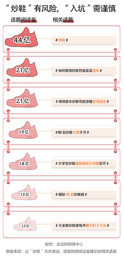 微博話題“揭秘95后炒鞋群”的相關閱讀量達到了1.9億,其中,有些95后炒鞋者靠“炒鞋”一夜暴富,也有不少炒鞋者虧得血本無歸,甚至有炒鞋者卷入經(jīng)濟糾紛或涉嫌違法。