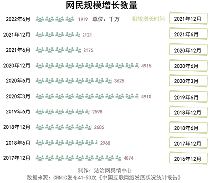 第50次《報(bào)告》顯示,2022年6月相較于2021年12月新增網(wǎng)民1919萬(wàn)人。