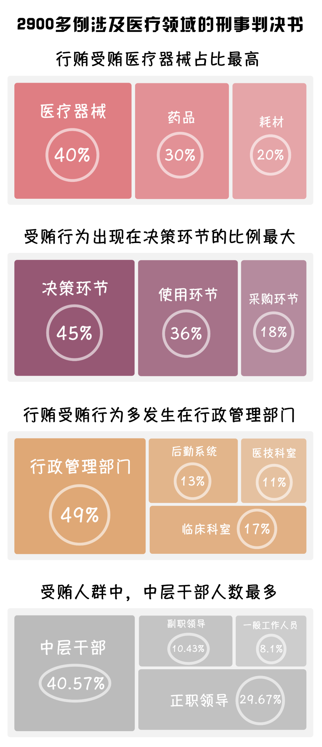 中國(guó)新聞網(wǎng)發(fā)布了一篇名為《2900多份醫(yī)療腐敗刑事判決書背后》的文章,其中梳理了2013-2021年間2900多例涉及醫(yī)療領(lǐng)域的刑事判決書,提到了如下關(guān)鍵點(diǎn):