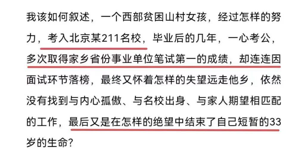 8月16日,微信公眾號(hào)“貞觀”發(fā)布一篇作者為“十二橡樹(shù)”的文章《一個(gè)外地女孩死在了我出租的公寓》。文章稱(chēng),今年4月,一名來(lái)自寧夏西海固山區(qū)的女孩租住了作者的單身公寓,她畢業(yè)于北京211高校,職業(yè)為會(huì)計(jì),當(dāng)時(shí)正在陜西西安找工作。女孩畢業(yè)后一心考公,多次取得家鄉(xiāng)省份事業(yè)單位筆試第一的成績(jī),卻一次次在面試環(huán)節(jié)落榜。6月25日,有人發(fā)現(xiàn)女孩疑似餓死在出租屋內(nèi),警方已介入處理。8月18日,“貞觀”以保護(hù)當(dāng)事人為由刪除該文章,并回應(yīng)稱(chēng)文中所述為真實(shí)事件。8月19日,“貞觀”再次回應(yīng)稱(chēng)文章來(lái)自作者投稿,經(jīng)過(guò)事實(shí)性審核,但案發(fā)地并非西安市,而是在周邊市縣。相關(guān)文章在社交平臺(tái)上引起熱傳,輿論呈現(xiàn)兩極分化:部分網(wǎng)民表示震驚和悲涼,借此對(duì)社會(huì)表達(dá)不滿(mǎn);部分網(wǎng)民則對(duì)文內(nèi)相關(guān)細(xì)節(jié)的真實(shí)性提出疑問(wèn)。