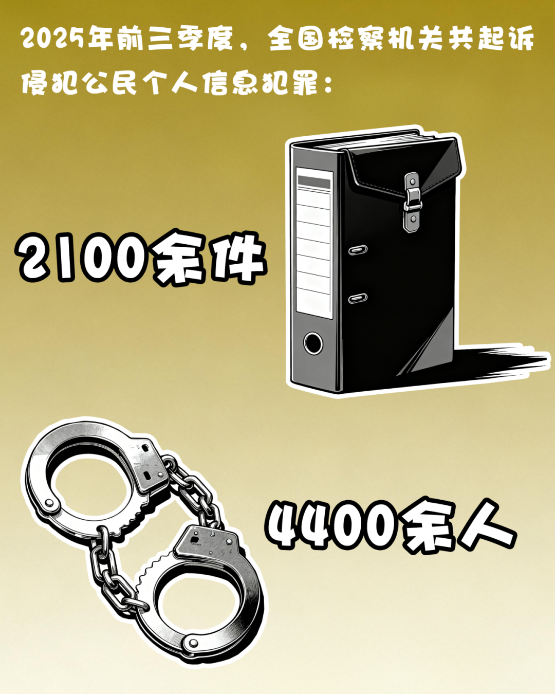 2024年,檢察機(jī)關(guān)起訴利用網(wǎng)絡(luò)實(shí)施的侵犯公民個(gè)人信息犯罪2458人;2025年前三季度,全國檢察機(jī)關(guān)共起訴侵犯公民個(gè)人信息犯罪2100余件4400余人。