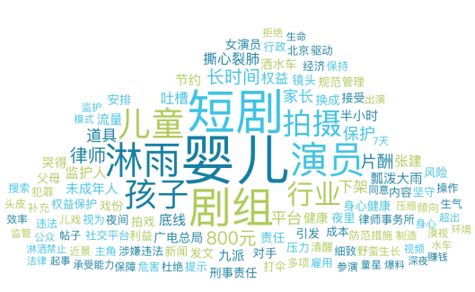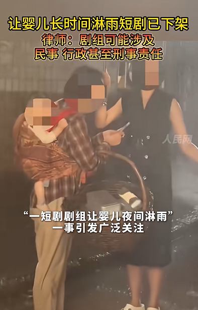 “劇組讓嬰兒淋雨拍短劇”事件經(jīng)演員曝光后引發(fā)輿論關(guān)注,隨著“夜間淋雨半小時(shí)”“哭得撕心裂肺”“片酬僅800元”“嬰兒家長(zhǎng)提前知曉拍攝內(nèi)容”等更多細(xì)節(jié)爆出,進(jìn)一步引發(fā)公眾對(duì)嬰兒健康的擔(dān)憂,以及對(duì)劇組、家長(zhǎng)的道德譴責(zé)。該事件撕開(kāi)了短劇行業(yè)亂象的一角,輿論據(jù)此延伸至對(duì)微短劇行業(yè)規(guī)范失守、兒童出演監(jiān)管盲區(qū)等深層問(wèn)題的反思。