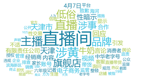 截至4月8日17時(shí),全網(wǎng)相關(guān)信息1.9萬(wàn)余條?!?曝某牛奶直播間涉黃涉低俗#”“#市監(jiān)回應(yīng)海河牛奶直播被指涉黃#”“#直播涉黃牛奶品牌為中華老字號(hào)#”等微博話題閱讀量累計(jì)超2.5億,曾登上熱搜榜第1位、第20位、第25位?!笆斜O(jiān)回應(yīng)海河牛奶直播間被指涉黃”“海河乳品就直播間涉黃致歉”等核心話題均登上百度熱搜總榜前列。