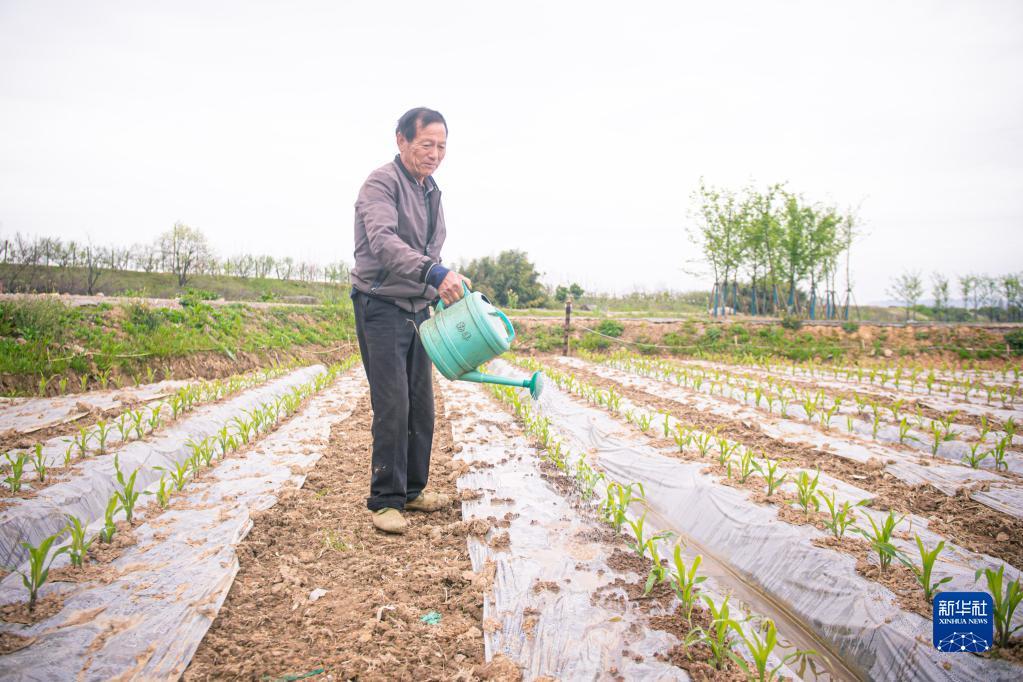 3月29日,在諸暨市楓橋鎮(zhèn)杜黃新村的農(nóng)耕體驗研學基地,村民為新苗澆水。記者 江漢 攝
