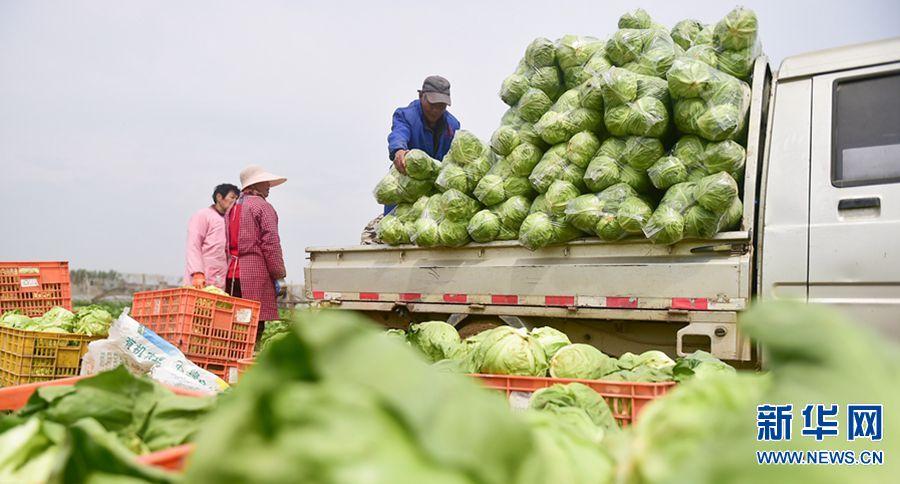 4月5日,在平樂(lè)鎮(zhèn)象莊村蔬菜種植基地內(nèi),農(nóng)民正忙著采收新鮮的包菜。黃政偉 攝