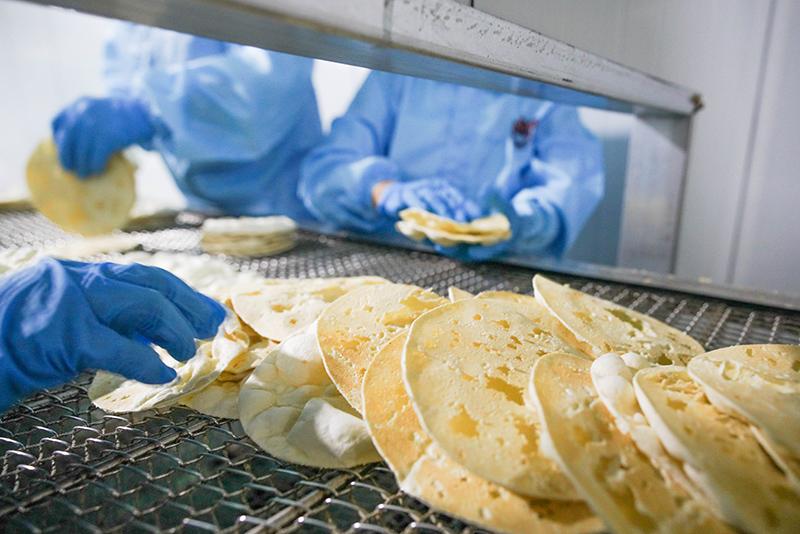 7月6日,山東省鄒平市孫鎮(zhèn)黨里等村聯(lián)合建立的燒餅廠,工人在生產線上包裝小餅。